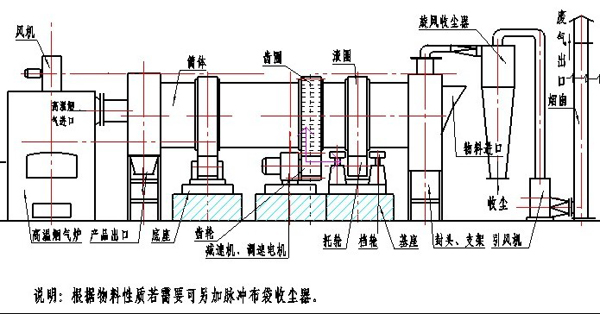 機械結構及工作原理 直熱式回轉滾筒干燥機主要由熱源、上料機、進料機、回轉滾筒、出料機、引風機、卸料器和配電柜構成。脫水后的濕物料進入干燥機后,在滾筒內均布的抄板的翻動下,物料在干燥機內均勻分散與熱空氣充分接觸,加快了干燥傳熱﹑傳質。在干燥過程中,物料在帶有傾斜度的抄板和熱氣質的作用下,至干燥機另一段卸料器排出成品。適合于滑石粉的烘干。 主要特點 1.轉筒干燥機械化程度高,生產(chǎn)能力較大,可連續(xù)運轉。 2.結構優(yōu)良﹑簡單﹑物料通過筒體阻力運行平穩(wěn)﹑操作方便。 3.故障少﹑維護費用低﹑功耗低。 4.適用范圍廣﹑產(chǎn)品干燥的均勻性好。